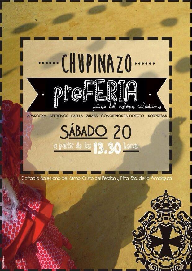 Los Patios del Colegio Salesiano, acogerán este sábado 20 septiembre, a partir de las 13,30 h, el I Chupinazo de preFeria, organizado por a Cofradía Salesiana del Stmo.Cristo del Perdón y Ntra.Sra.de la Amargura, en el que se tendrán aparcería, aperitivos, paella, zumba, conciertos en directo, sorpresas...