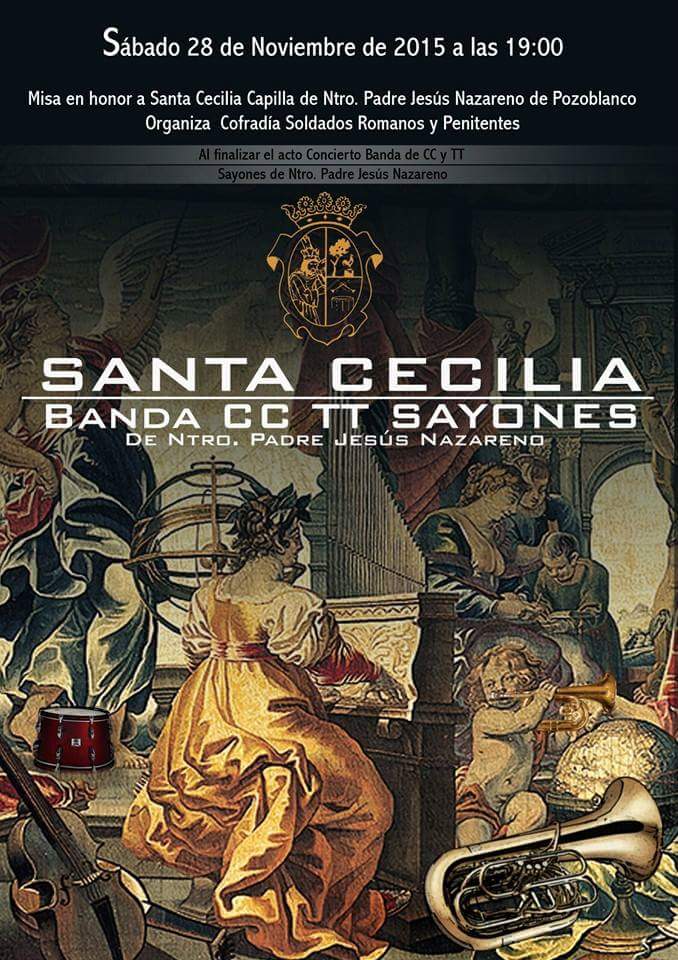 Este próximo sábado 28 de noviembre de 2015, en la Capilla de Ntro.Padre Jesús Nazareno a las 19,00 horas, se celebrará una misa eh honor a la Patrona de la Música, Santa Cecilia.