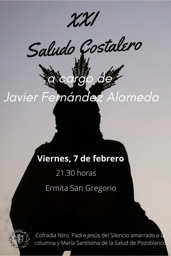 La Cofradía de Nuestro Padre Jesús del Silencio amarrado a la columna y María Santísima de la Salud, celebrará el XXI Saludo Costalero, este próximo viernes 7 de febrero a las 21.30 h en la ermita de San Gregorio.